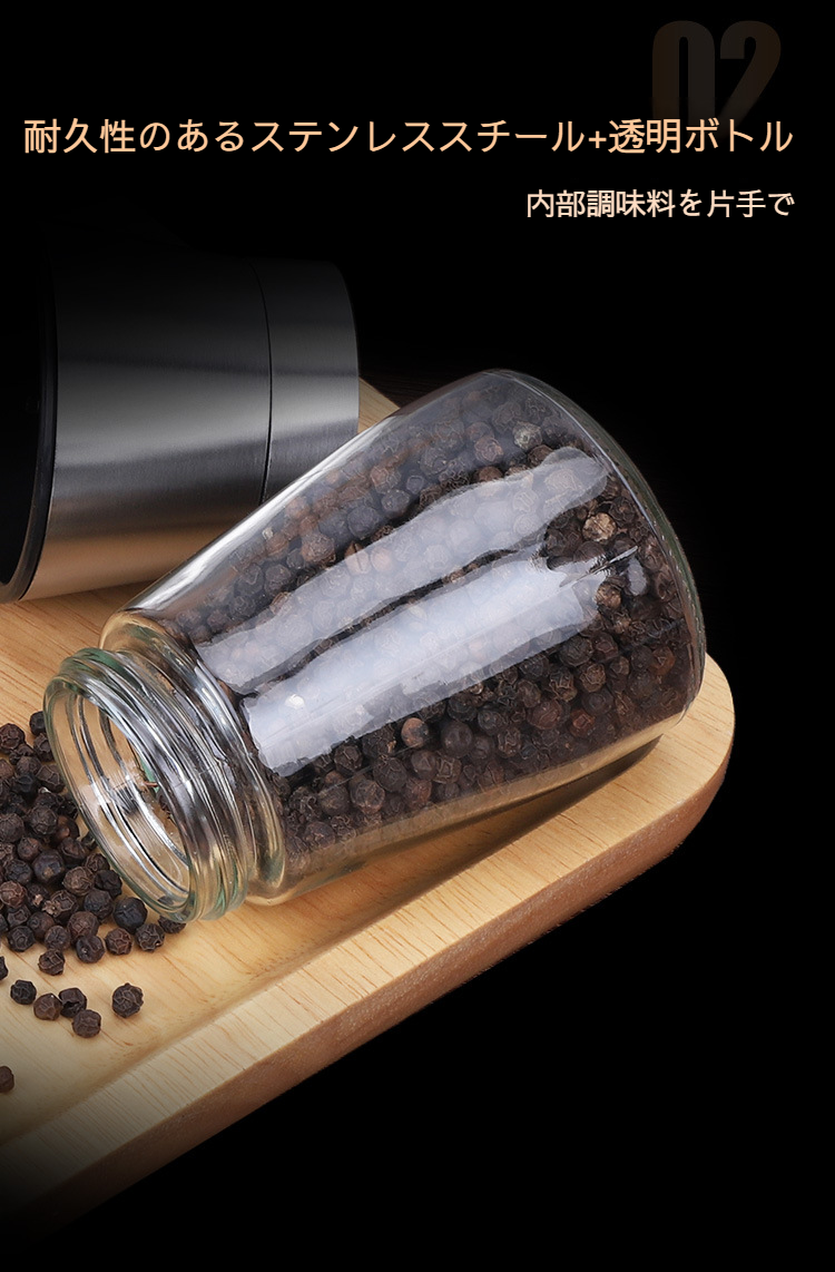 調整可能なソルトアンドペッパーグラインダーセット手動調整可能なガラスボトルグラインダーブラックペッパー四川胡椒海塩ステンレス鋼セラミックコア調味料スプリンクラーボトル
